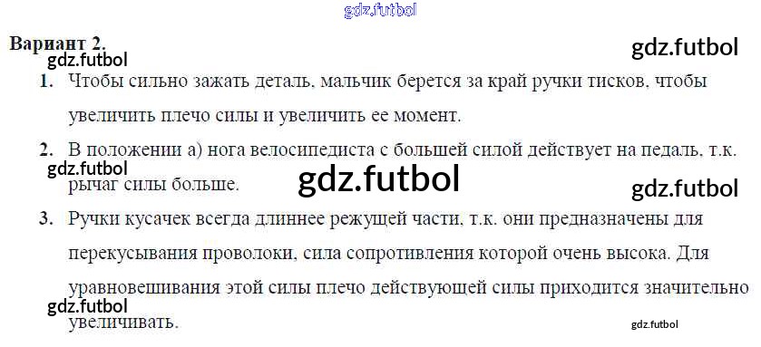 Готовые домашние задания по Физике за 7 класс Марон Самостоятельные и контрольные работы Вертикаль 2016 ФГОС - СР-№60. Рычаги в технике, быту и природе Вариант №2