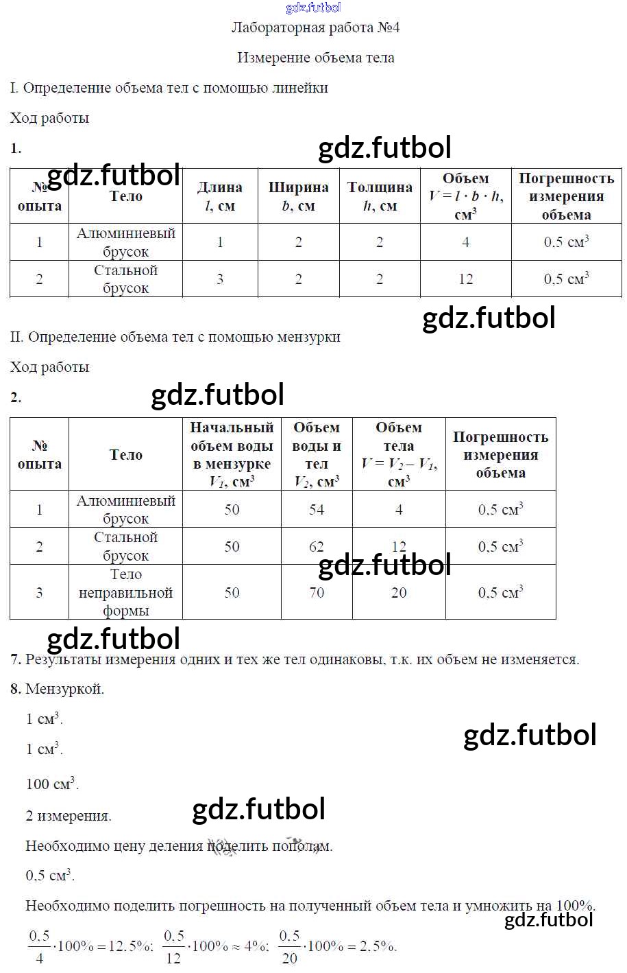 Готовые домашние задания по Физике за 7 класс Минькова Тетрадь для лабораторных работ УМК 2017 ФГОС - Лабораторные работы ЛР №4. Измерение объема тела
