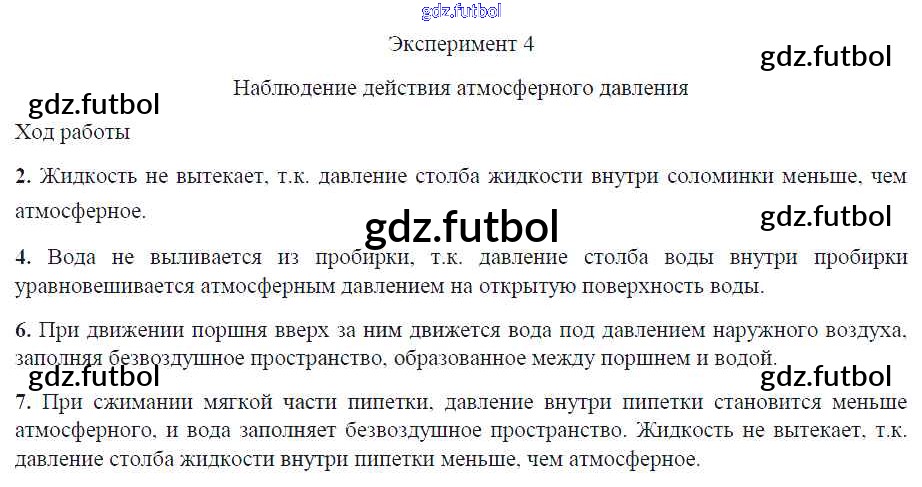 Готовые домашние задания по Физике за 7 класс Минькова Тетрадь для лабораторных работ УМК 2017 ФГОС - Эксперименты Эксперимент 4. Наблюдение действия атмосферного давления