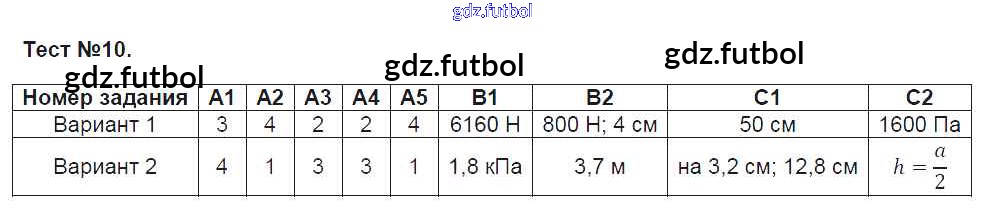 Готовые домашние задания по Физике за 7 класс Зорин Контрольно-измерительные материалы (КИМ) 2017 ФГОС - Тесты Тест-10