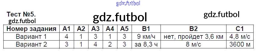 Готовые домашние задания по Физике за 7 класс Зорин Контрольно-измерительные материалы (КИМ) 2017 ФГОС - Тесты Тест-5