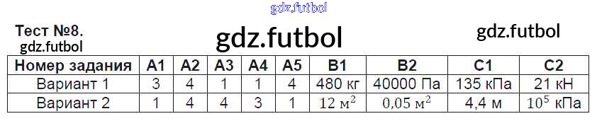 Готовые домашние задания по Физике за 7 класс Зорин Контрольно-измерительные материалы (КИМ) 2017 ФГОС - Тесты Тест-8