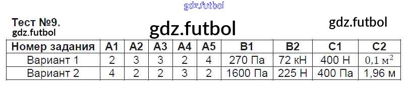 Готовые домашние задания по Физике за 7 класс Зорин Контрольно-измерительные материалы (КИМ) 2017 ФГОС - Тесты Тест-9