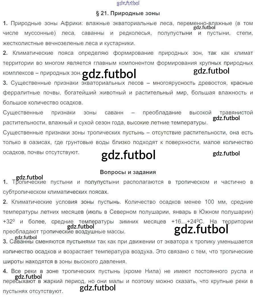 Готовые решения задач (ГДЗ) по Географии седьмой класс Коринская, Душина Учебник 2017 ФГОС - Параграфы 21 доступны для различных учебных материалов. У нас вы сможете найти авторские решения для всех пособий, предназначенных для школьников. Не секрет, что в настоящее время многие школьники прибегают к использованию готовых решебников, ведь они содержат подробные ответы для каждого упражнения, представленного в учебнике.