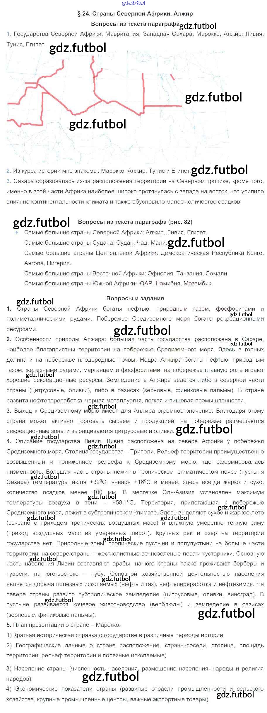 Готовые решения задач (ГДЗ) по Географии седьмой класс Коринская, Душина Учебник 2017 ФГОС - Параграфы 24 доступны для различных учебных материалов. У нас вы сможете найти авторские решения для всех пособий, предназначенных для школьников. Не секрет, что в настоящее время многие школьники прибегают к использованию готовых решебников, ведь они содержат подробные ответы для каждого упражнения, представленного в учебнике.