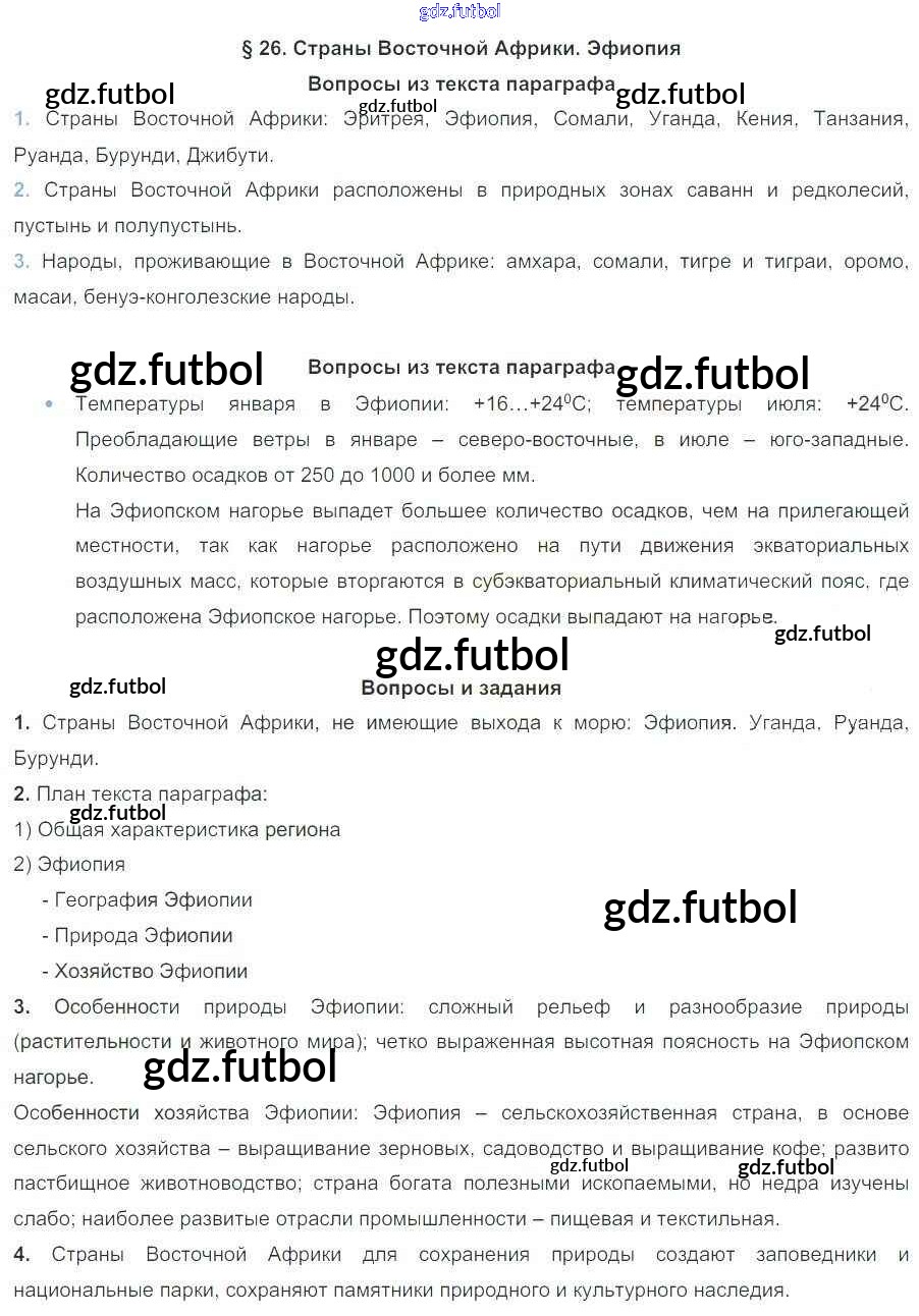 Готовые решения задач (ГДЗ) по Географии седьмой класс Коринская, Душина Учебник 2017 ФГОС - Параграфы 26 доступны для различных учебных материалов. У нас вы сможете найти авторские решения для всех пособий, предназначенных для школьников. Не секрет, что в настоящее время многие школьники прибегают к использованию готовых решебников, ведь они содержат подробные ответы для каждого упражнения, представленного в учебнике.