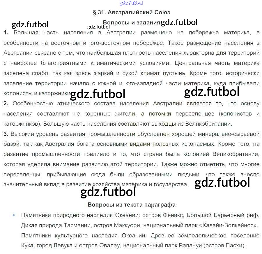Готовые решения задач (ГДЗ) по Географии седьмой класс Коринская, Душина Учебник 2017 ФГОС - Параграфы 31 доступны для различных учебных материалов. У нас вы сможете найти авторские решения для всех пособий, предназначенных для школьников. Не секрет, что в настоящее время многие школьники прибегают к использованию готовых решебников, ведь они содержат подробные ответы для каждого упражнения, представленного в учебнике.