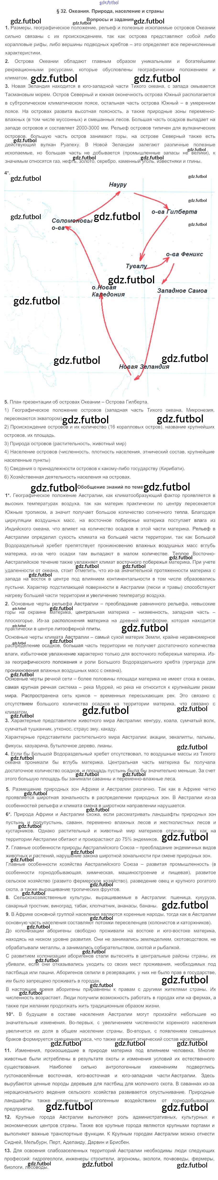 Готовые решения задач (ГДЗ) по Географии седьмой класс Коринская, Душина Учебник 2017 ФГОС - Параграфы 32 доступны для различных учебных материалов. У нас вы сможете найти авторские решения для всех пособий, предназначенных для школьников. Не секрет, что в настоящее время многие школьники прибегают к использованию готовых решебников, ведь они содержат подробные ответы для каждого упражнения, представленного в учебнике.