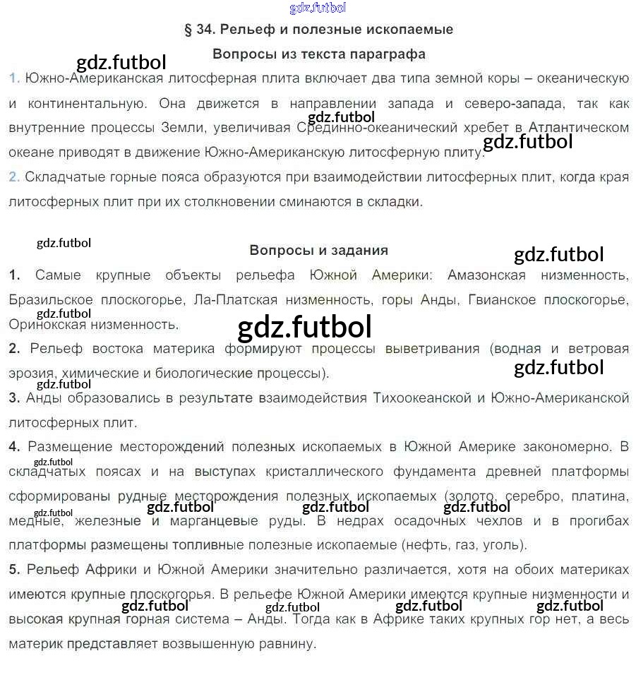 Готовые решения задач (ГДЗ) по Географии седьмой класс Коринская, Душина Учебник 2017 ФГОС - Параграфы 34 доступны для различных учебных материалов. У нас вы сможете найти авторские решения для всех пособий, предназначенных для школьников. Не секрет, что в настоящее время многие школьники прибегают к использованию готовых решебников, ведь они содержат подробные ответы для каждого упражнения, представленного в учебнике.