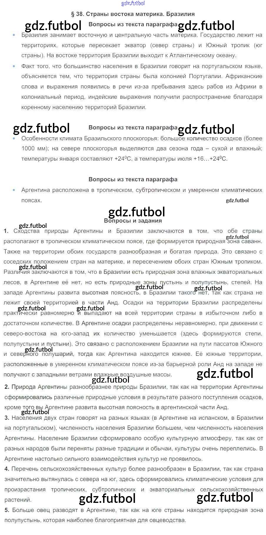 Готовые решения задач (ГДЗ) по Географии седьмой класс Коринская, Душина Учебник 2017 ФГОС - Параграфы 38 доступны для различных учебных материалов. У нас вы сможете найти авторские решения для всех пособий, предназначенных для школьников. Не секрет, что в настоящее время многие школьники прибегают к использованию готовых решебников, ведь они содержат подробные ответы для каждого упражнения, представленного в учебнике.
