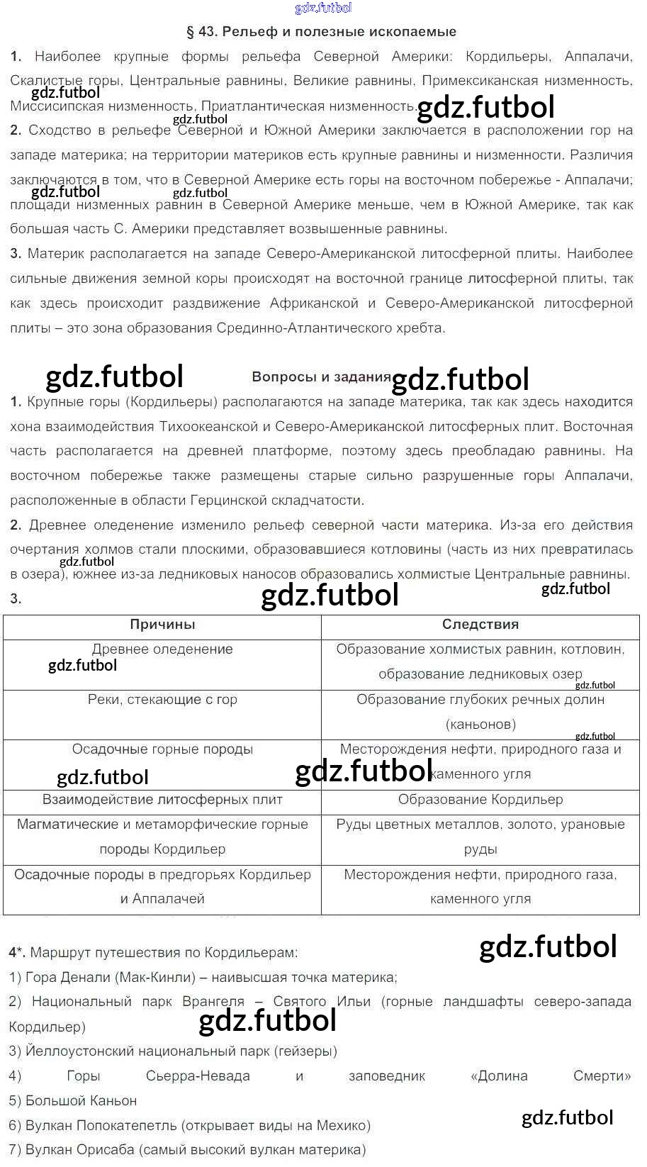 Готовые решения задач (ГДЗ) по Географии седьмой класс Коринская, Душина Учебник 2017 ФГОС - Параграфы 43 доступны для различных учебных материалов. У нас вы сможете найти авторские решения для всех пособий, предназначенных для школьников. Не секрет, что в настоящее время многие школьники прибегают к использованию готовых решебников, ведь они содержат подробные ответы для каждого упражнения, представленного в учебнике.