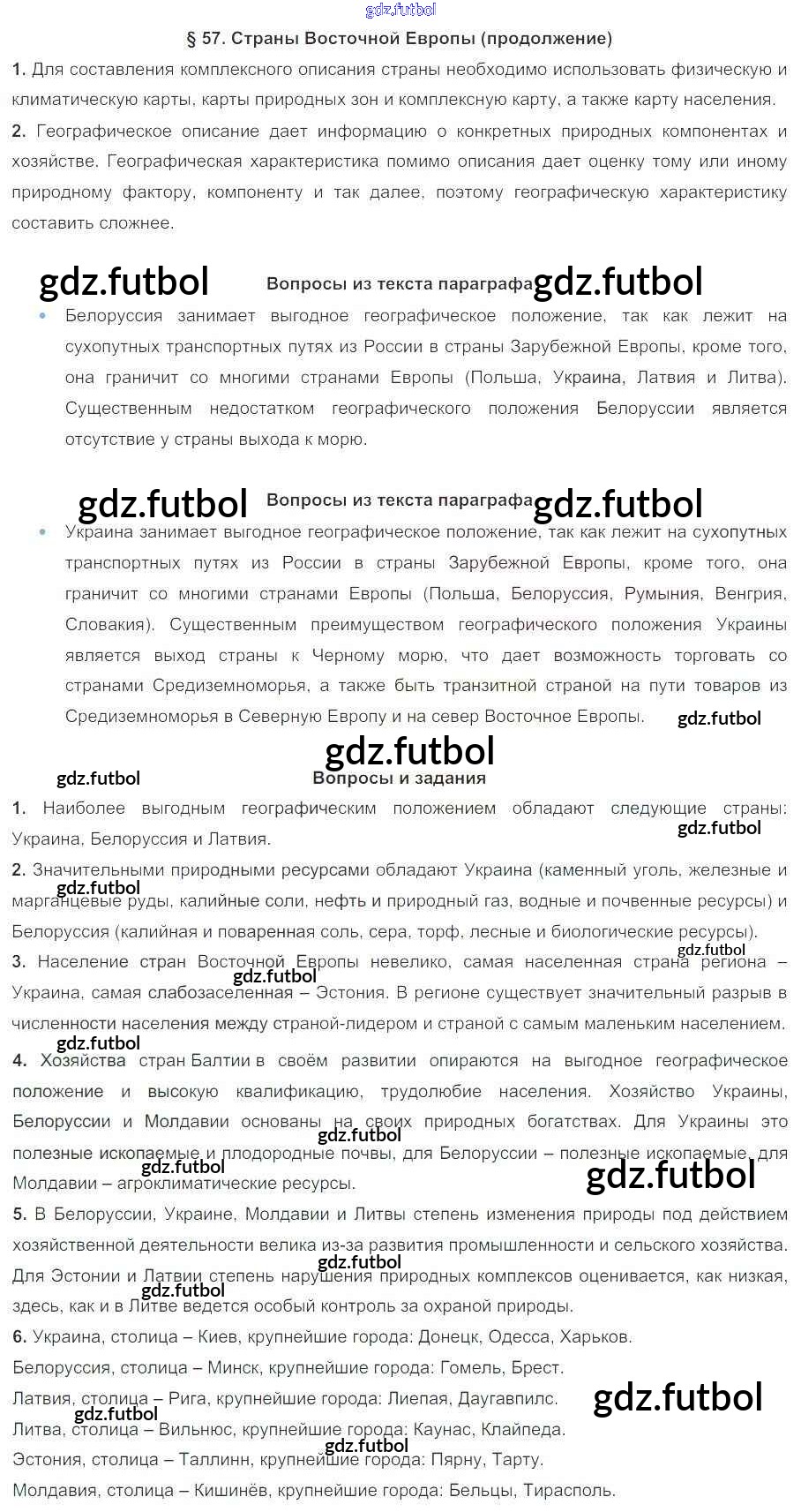 Готовые решения задач (ГДЗ) по Географии седьмой класс Коринская, Душина Учебник 2017 ФГОС - Параграфы 57 доступны для различных учебных материалов. У нас вы сможете найти авторские решения для всех пособий, предназначенных для школьников. Не секрет, что в настоящее время многие школьники прибегают к использованию готовых решебников, ведь они содержат подробные ответы для каждого упражнения, представленного в учебнике.