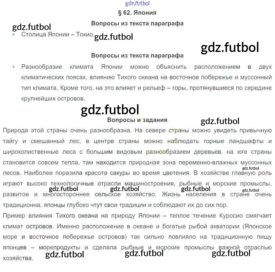 Готовые решения задач (ГДЗ) по Географии седьмой класс Коринская, Душина Учебник 2017 ФГОС - Параграфы 62 доступны для различных учебных материалов. У нас вы сможете найти авторские решения для всех пособий, предназначенных для школьников. Не секрет, что в настоящее время многие школьники прибегают к использованию готовых решебников, ведь они содержат подробные ответы для каждого упражнения, представленного в учебнике.