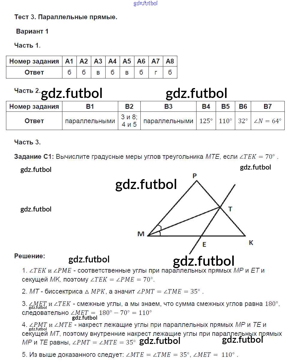 Готовые решения задач (ГДЗ) по Геометрии седьмой класс Фарков Тесты УМК 2015 ФГОС - Глава 3. Варианты 1 доступны для различных учебных материалов. У нас вы сможете найти авторские решения для всех пособий, предназначенных для школьников. Не секрет, что в настоящее время многие школьники прибегают к использованию готовых решебников, ведь они содержат подробные ответы для каждого упражнения, представленного в учебнике.