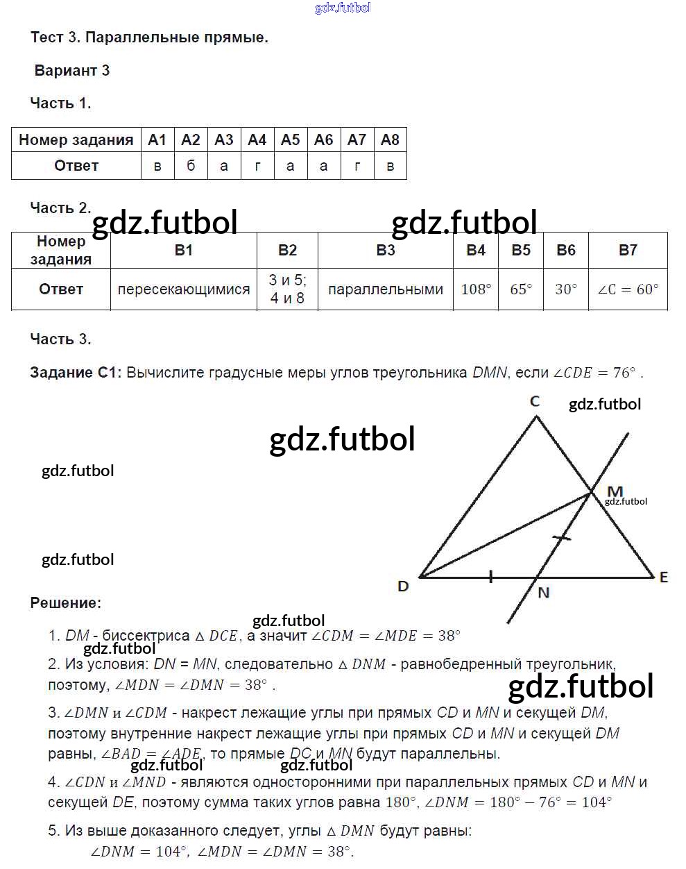 Готовые решения задач (ГДЗ) по Геометрии седьмой класс Фарков Тесты УМК 2015 ФГОС - Глава 3. Варианты 3 доступны для различных учебных материалов. У нас вы сможете найти авторские решения для всех пособий, предназначенных для школьников. Не секрет, что в настоящее время многие школьники прибегают к использованию готовых решебников, ведь они содержат подробные ответы для каждого упражнения, представленного в учебнике.