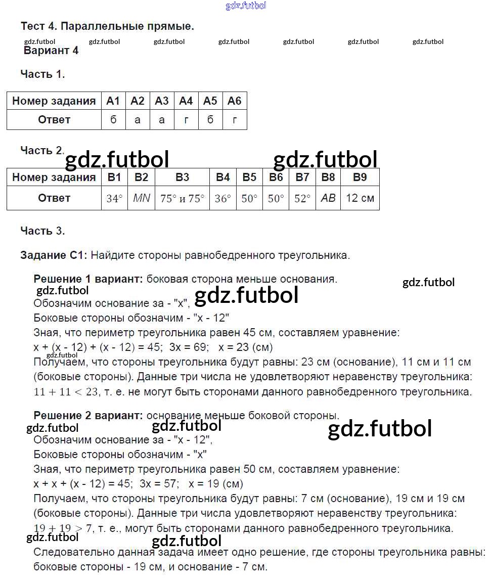 Готовые решения задач (ГДЗ) по Геометрии седьмой класс Фарков Тесты УМК 2015 ФГОС - Глава 4. Варианты 4 доступны для различных учебных материалов. У нас вы сможете найти авторские решения для всех пособий, предназначенных для школьников. Не секрет, что в настоящее время многие школьники прибегают к использованию готовых решебников, ведь они содержат подробные ответы для каждого упражнения, представленного в учебнике.