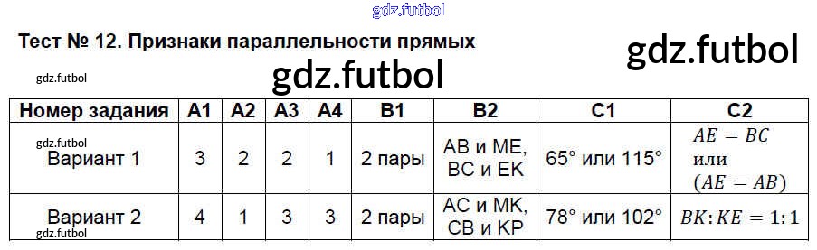 Готовые домашние задания по Геометрии за 7 класс Гаврилова Контрольно-измерительные материалы (КИМ) 2017 ФГОС - Тесты 12