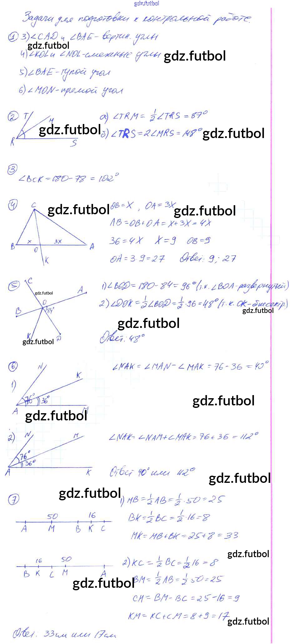Готовые домашние задания по Геометрии за 7 класс Мельникова Контрольные работы УМК 2016 ФГОС - КР-1. Варианты Подготовка