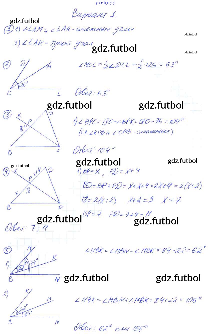 Готовые домашние задания по Геометрии за 7 класс Мельникова Контрольные работы УМК 2016 ФГОС - КР-1. Варианты 1