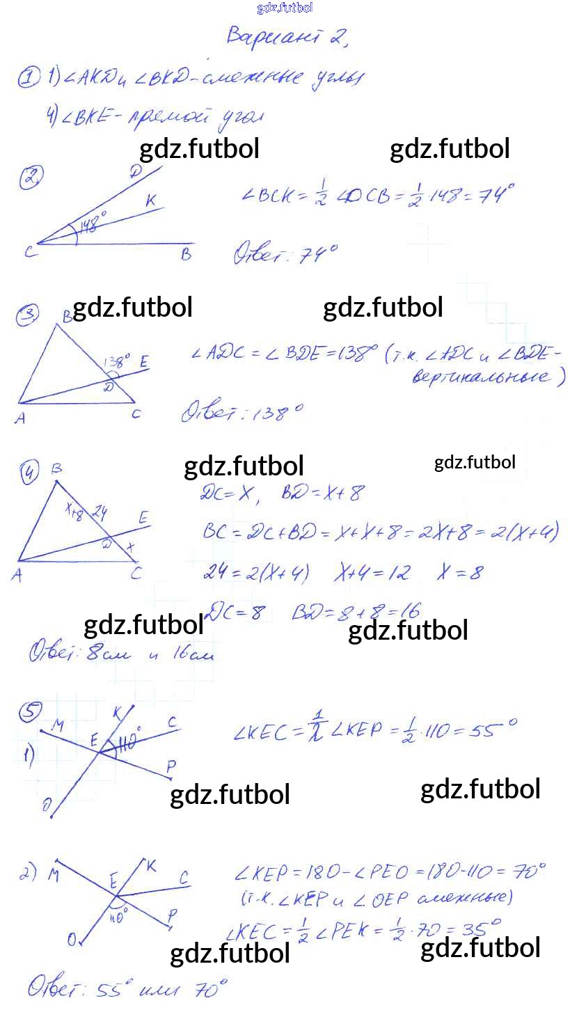 Готовые домашние задания по Геометрии за 7 класс Мельникова Контрольные работы УМК 2016 ФГОС - КР-1. Варианты 2