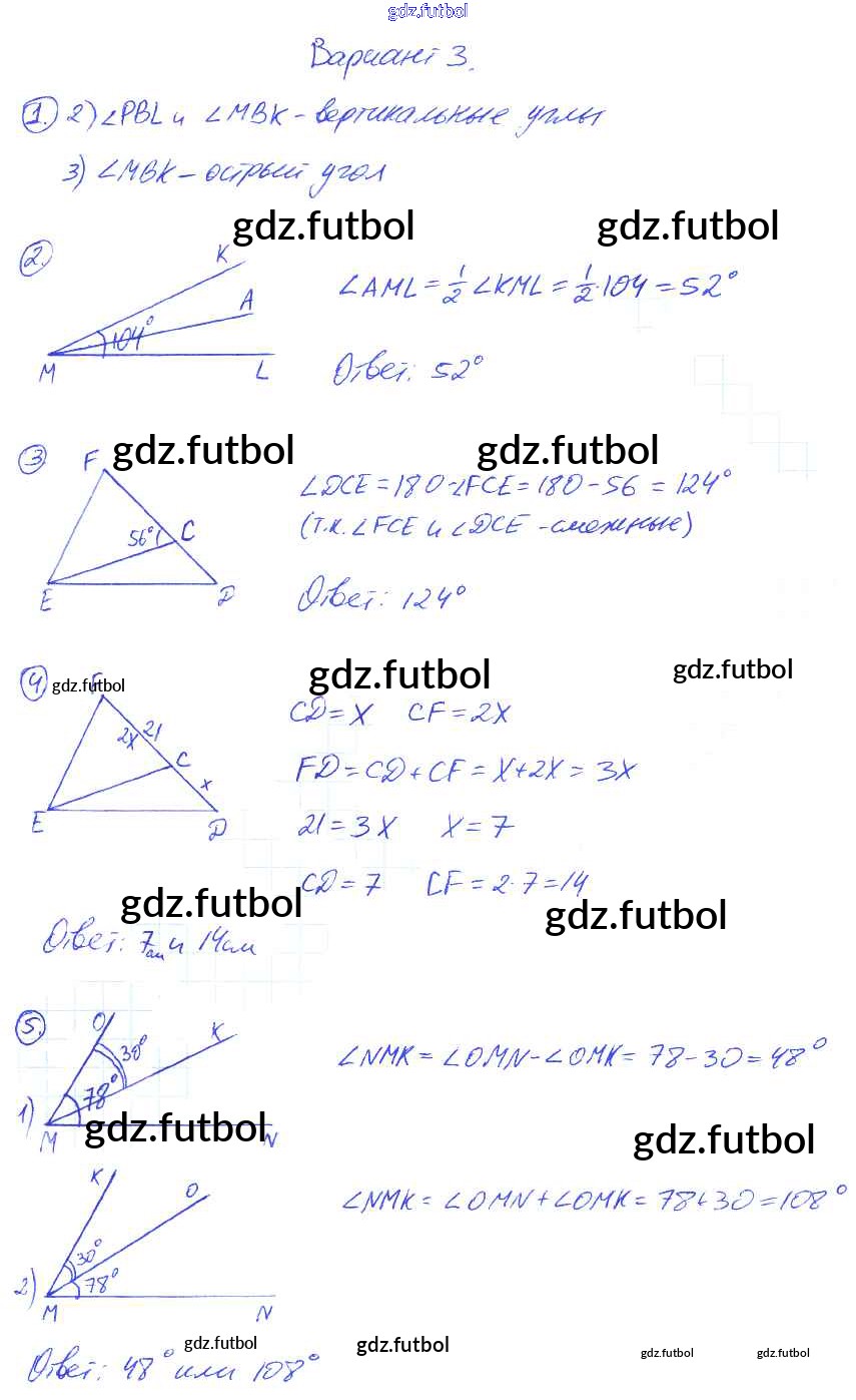 Готовые домашние задания по Геометрии за 7 класс Мельникова Контрольные работы УМК 2016 ФГОС - КР-1. Варианты 3