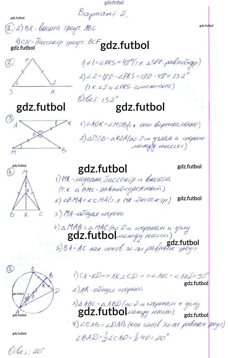 Готовые домашние задания по Геометрии за 7 класс Мельникова Контрольные работы УМК 2016 ФГОС - КР-2. Варианты 2