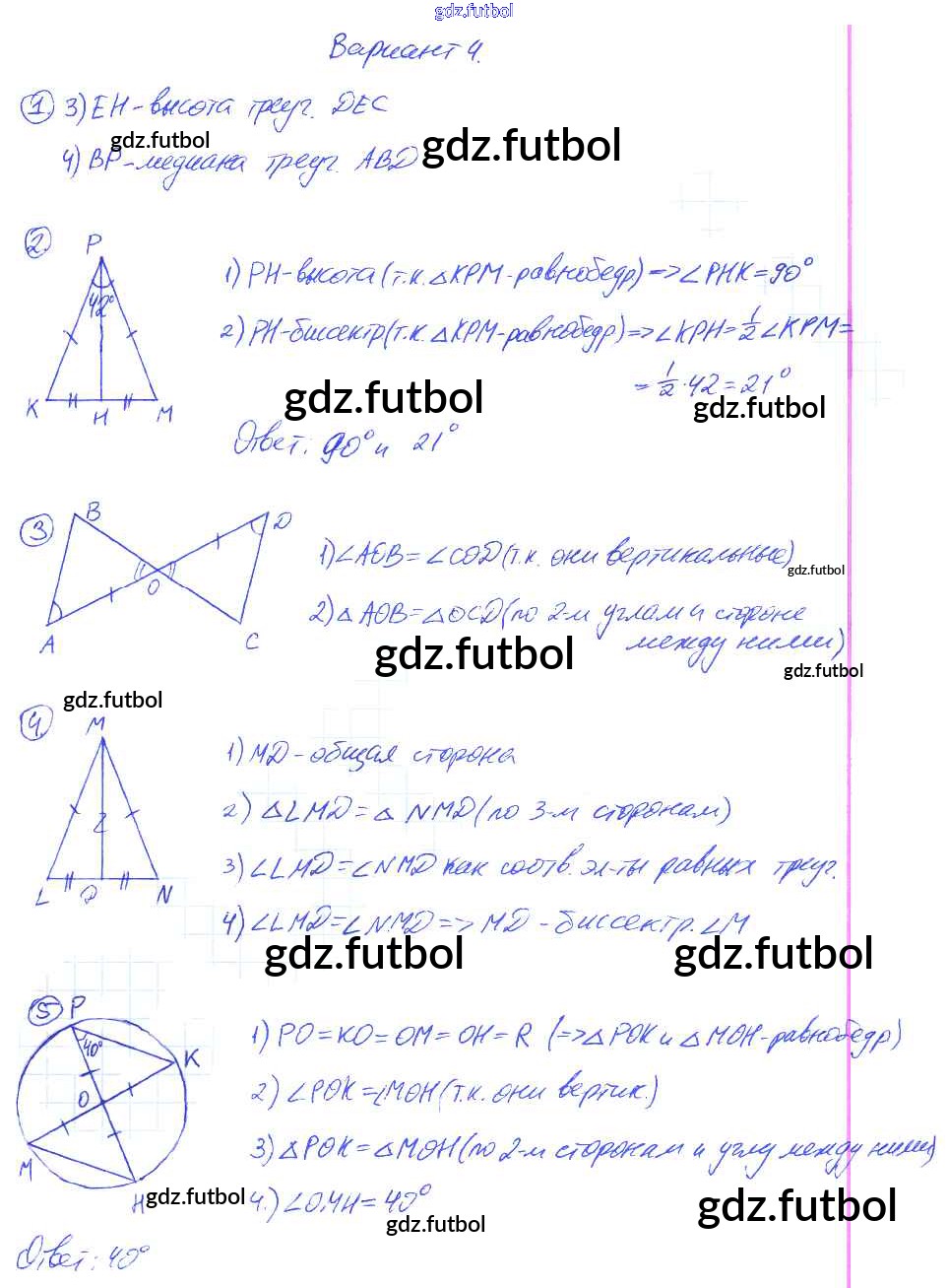 Готовые домашние задания по Геометрии за 7 класс Мельникова Контрольные работы УМК 2016 ФГОС - КР-2. Варианты 4