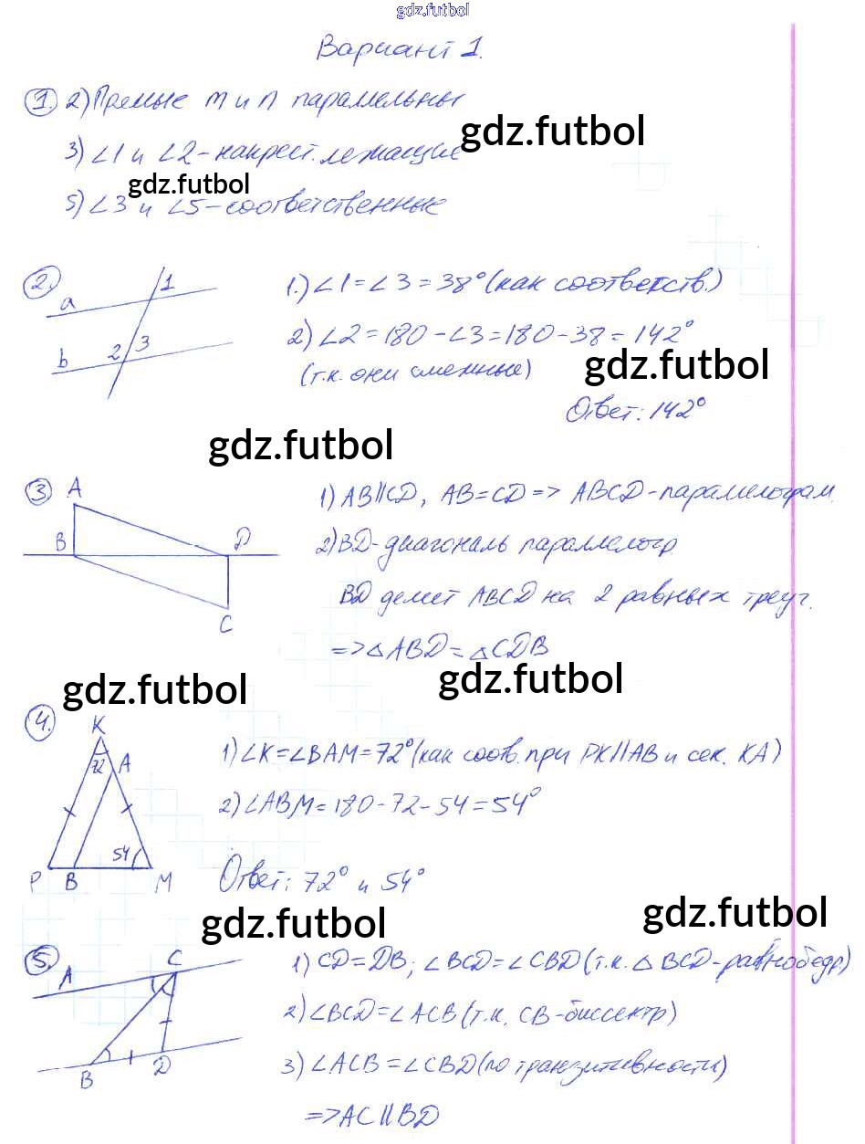 Готовые домашние задания по Геометрии за 7 класс Мельникова Контрольные работы УМК 2016 ФГОС - КР-3. Варианты 1