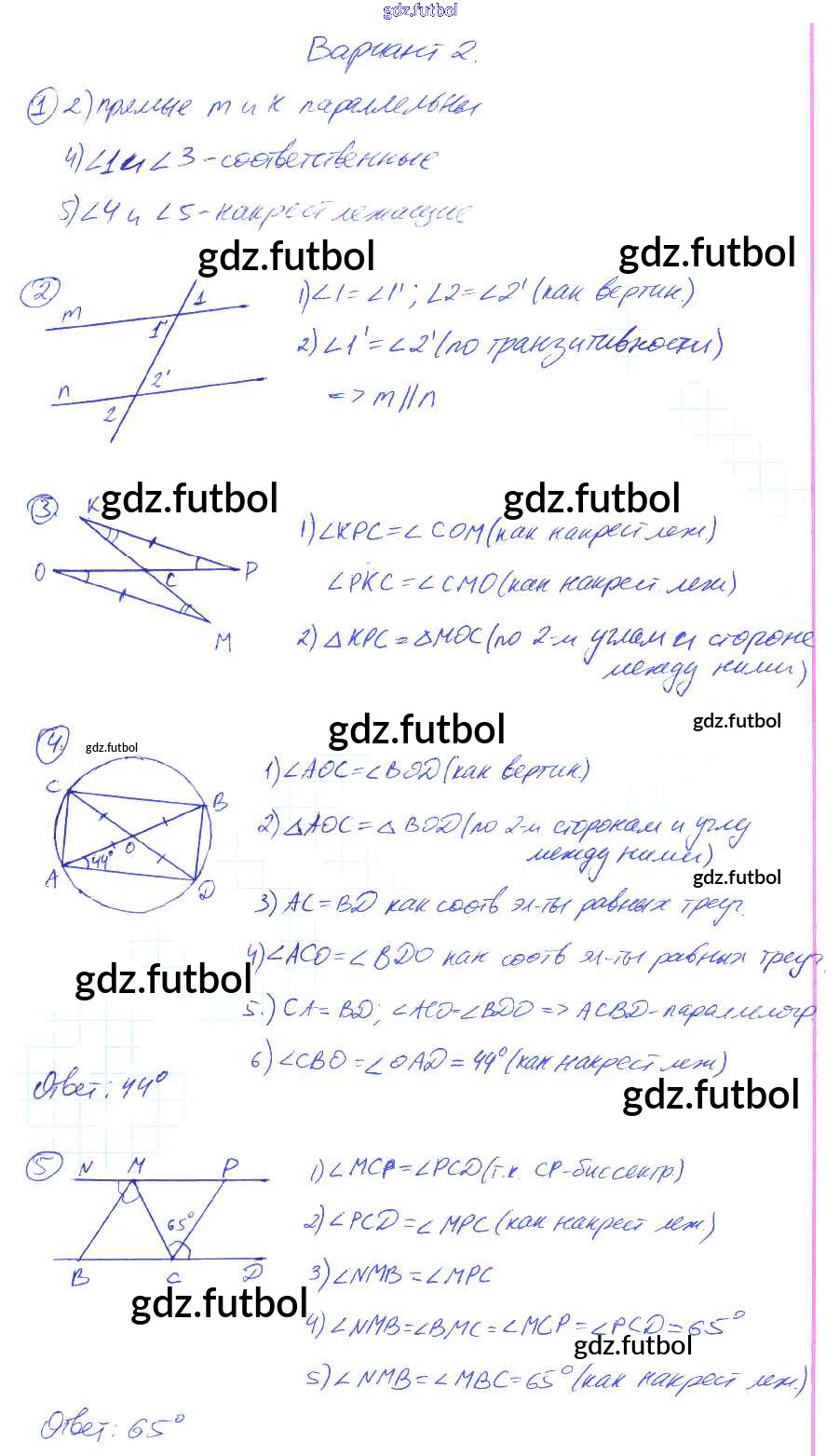 Готовые домашние задания по Геометрии за 7 класс Мельникова Контрольные работы УМК 2016 ФГОС - КР-3. Варианты 2
