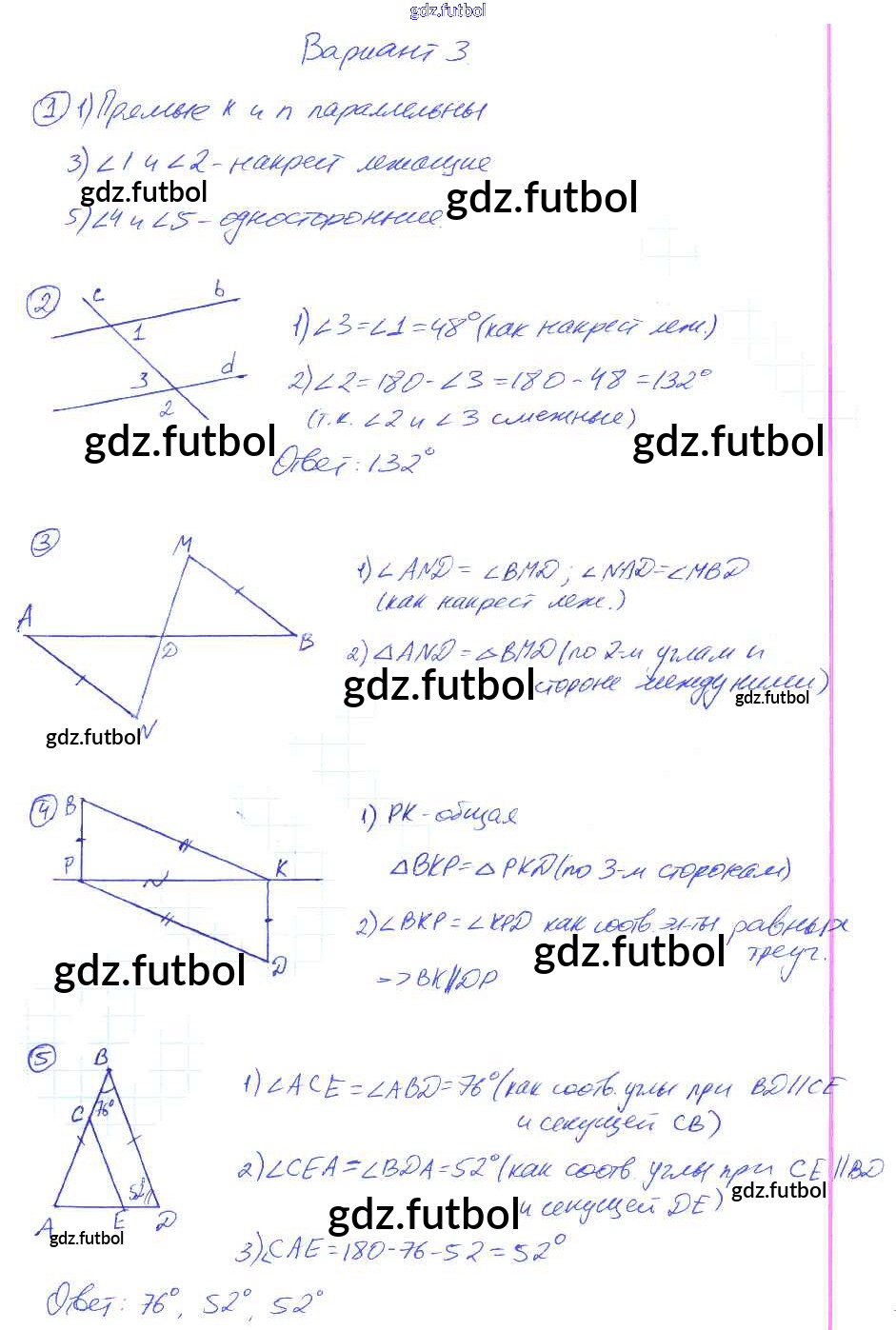 Готовые домашние задания по Геометрии за 7 класс Мельникова Контрольные работы УМК 2016 ФГОС - КР-3. Варианты 3