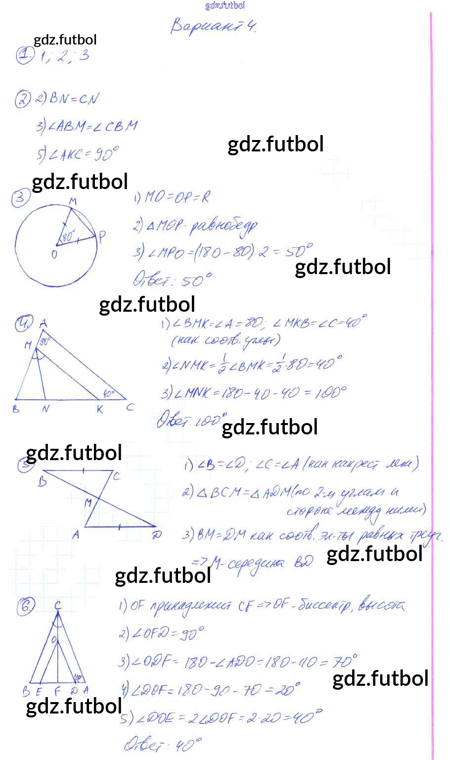 Готовые домашние задания по Геометрии за 7 класс Мельникова Контрольные работы УМК 2016 ФГОС - КР-5. Варианты 4
