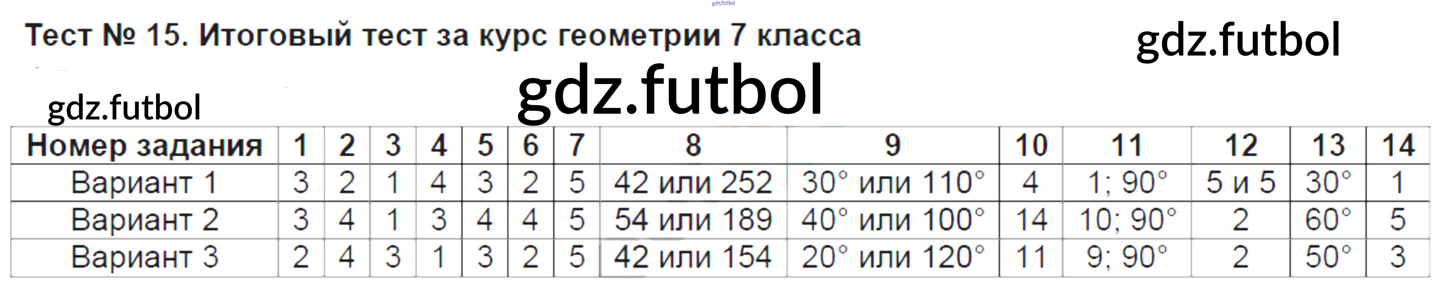 Готовые домашние задания по Геометрии за 7 класс Рязановский Контрольно-измерительные материалы (КИМ) 2014 ФГОС - Тесты 15