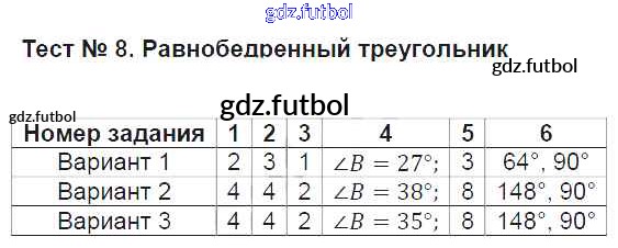 Готовые домашние задания по Геометрии за 7 класс Рязановский Контрольно-измерительные материалы (КИМ) 2014 ФГОС - Тесты 8