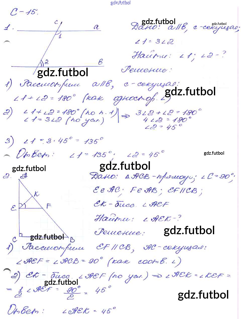 Готовые домашние задания по Геометрии за 7 класс Зив Дидактические материалы 2016 ФГОС - СР-15. Варианты 1