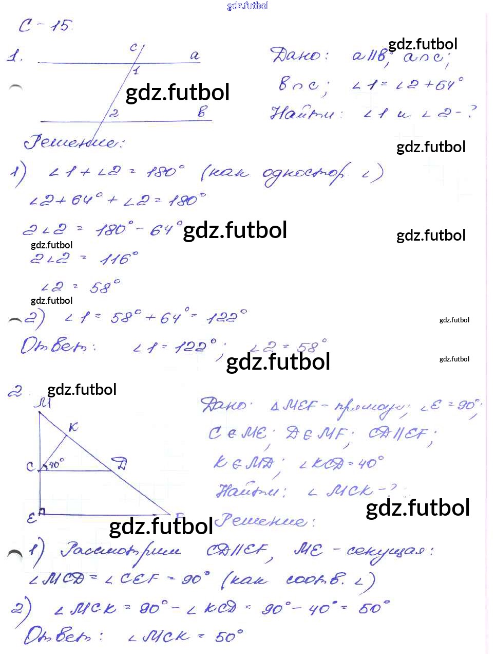 Готовые домашние задания по Геометрии за 7 класс Зив Дидактические материалы 2016 ФГОС - СР-15. Варианты 2