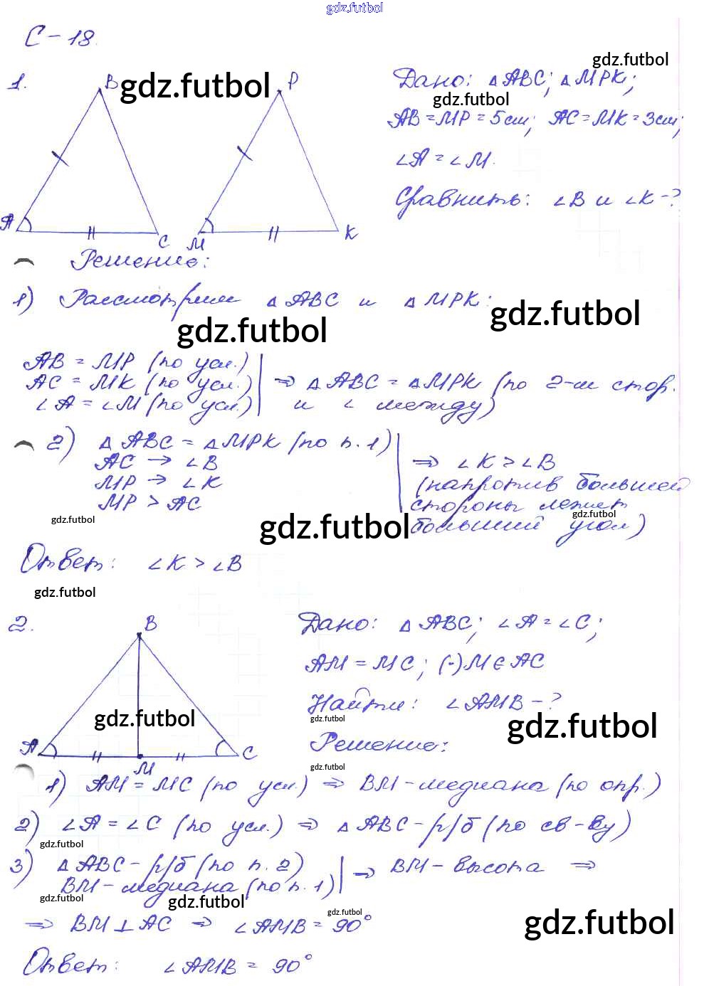 Готовые домашние задания по Геометрии за 7 класс Зив Дидактические материалы 2016 ФГОС - СР-18. Варианты 1