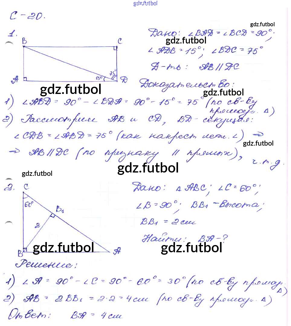 Готовые домашние задания по Геометрии за 7 класс Зив Дидактические материалы 2016 ФГОС - СР-20. Варианты 1