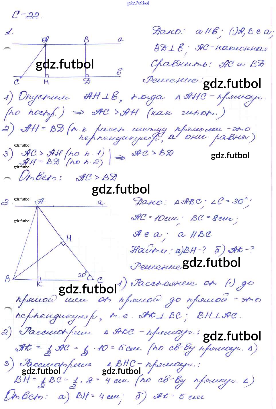 Готовые домашние задания по Геометрии за 7 класс Зив Дидактические материалы 2016 ФГОС - СР-22. Варианты 1