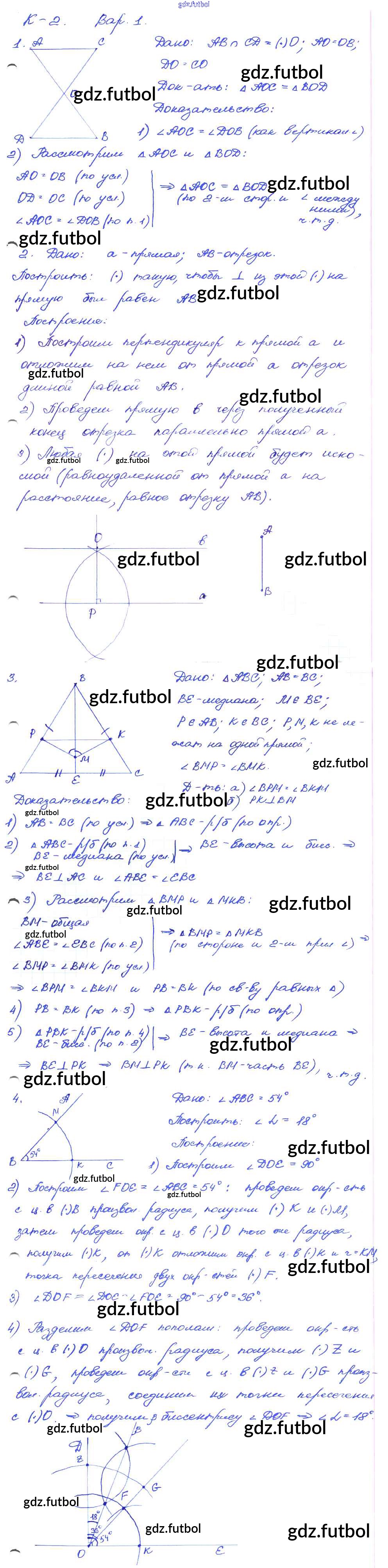 Готовые домашние задания по Геометрии за 7 класс Зив Дидактические материалы 2016 ФГОС - КР-2. Варианты 1
