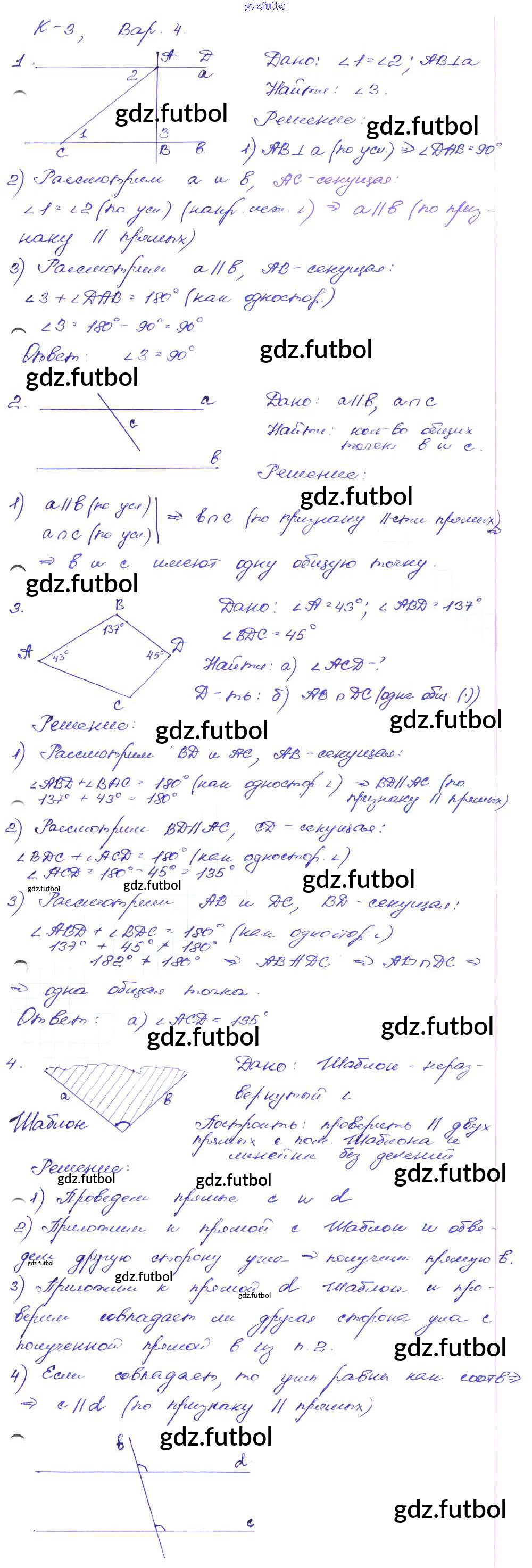 Готовые домашние задания по Геометрии за 7 класс Зив Дидактические материалы 2016 ФГОС - КР-3. Варианты 4