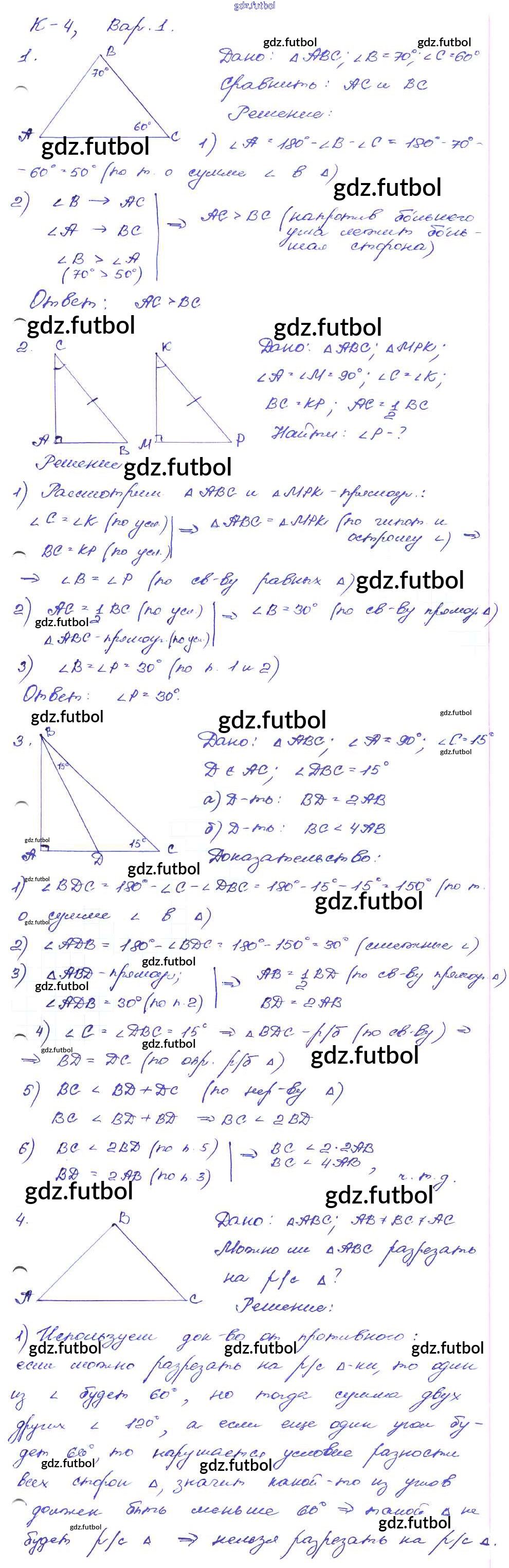 Готовые домашние задания по Геометрии за 7 класс Зив Дидактические материалы 2016 ФГОС - КР-4. Варианты 1
