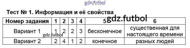 Готовые домашние задания по Информатике за 7 класс Масленикова Контрольно-измерительные материалы (КИМ) 2017 ФГОС - Тесты Тест №1. Информация и её свойства