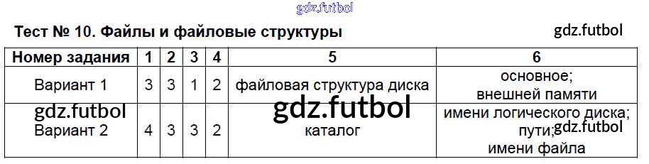Готовые домашние задания по Информатике за 7 класс Масленикова Контрольно-измерительные материалы (КИМ) 2017 ФГОС - Тесты Тест №10. Файлы и файловые структуры