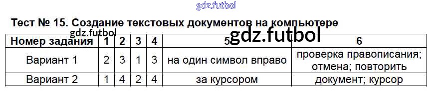 Готовые домашние задания по Информатике за 7 класс Масленикова Контрольно-измерительные материалы (КИМ) 2017 ФГОС - Тесты Тест №15. Создание текстовых документов на компьютере