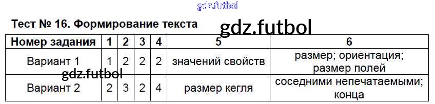 Готовые домашние задания по Информатике за 7 класс Масленикова Контрольно-измерительные материалы (КИМ) 2017 ФГОС - Тесты Тест №16. Формирование текста