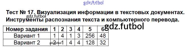 Готовые домашние задания по Информатике за 7 класс Масленикова Контрольно-измерительные материалы (КИМ) 2017 ФГОС - Тесты Тест №17. Визуализация информации в текстовых документах
