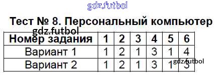 Готовые домашние задания по Информатике за 7 класс Масленикова Контрольно-измерительные материалы (КИМ) 2017 ФГОС - Тесты Тест №8. Персональный компьютер