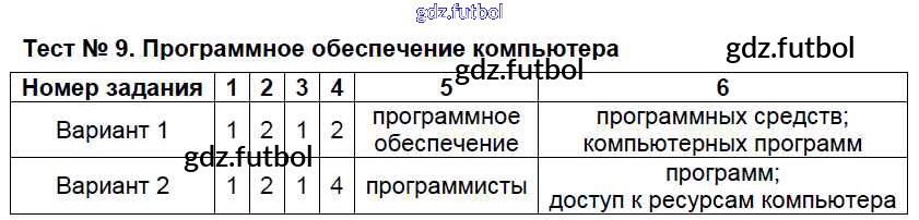 Готовые домашние задания по Информатике за 7 класс Масленикова Контрольно-измерительные материалы (КИМ) 2017 ФГОС - Тесты Тест №9. Программное обеспечение компьютера