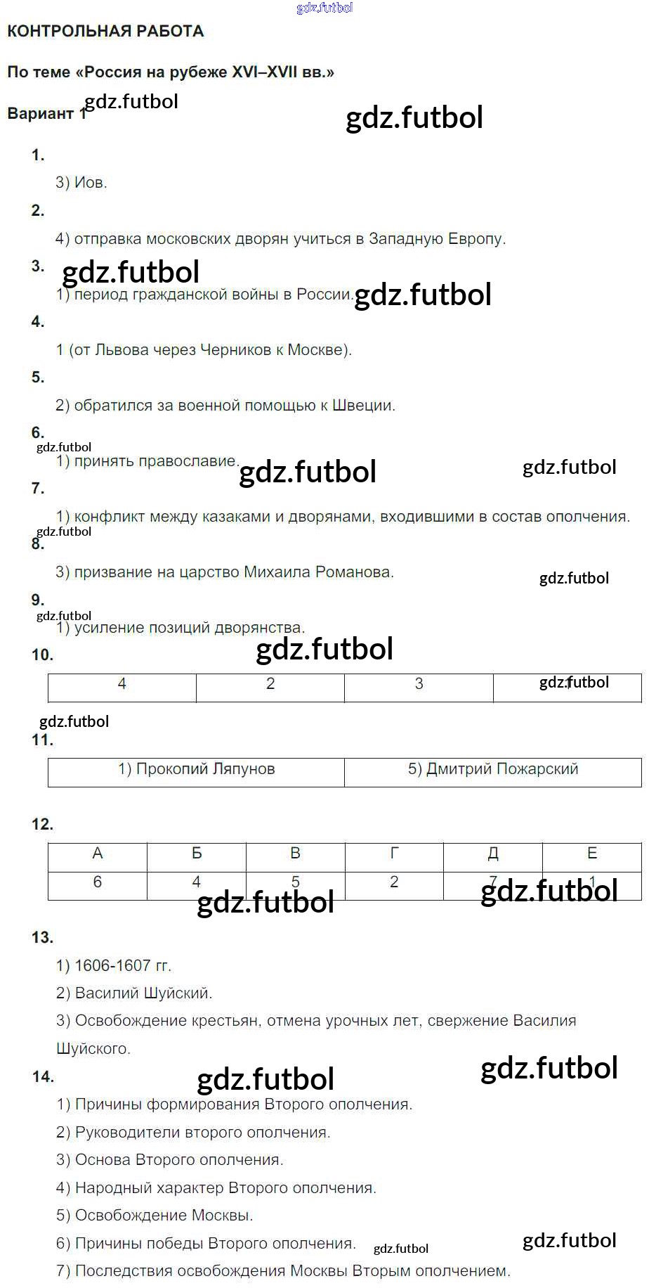 Готовые домашние задания по Истории за 7 класс Акиньшина Рабочая тетрадь 2013 ФГОС - КР. Россия на рубеже XVI-XVII вв Вариант 1
