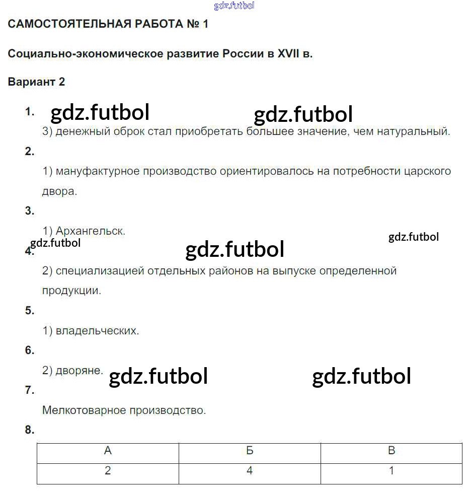Готовые домашние задания по Истории за 7 класс Акиньшина Рабочая тетрадь 2013 ФГОС - СР-1. Социально-экономическое развитие России в XVII веке Вариант 2